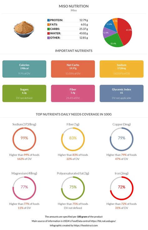 29.6% 38.7% 31.6% total carbohydrate total fat protein 93 cal. A 100 gram serving of miso soup has less than 2.5 grams of net carbs. Web where do the calories in miso paste come from?